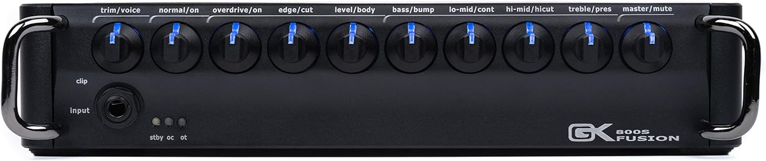From Gallien Krueger: The Fusion S Series heads are GK's new Class D model heads with a tube preamp. The rich warmth of the tubes combined with the fast, punchy power section that GK bass amplifiers are known for is an experience like no other. These high-output heads incorporate three 12ax7 tubes in the preamp, including one dedicated to the overdrive channel, making it GK's first tube-driven overdrive channel. The illuminated knobs add an extra level of sophistication and design not only making it easier to dial your tone on stage and adding beautiful stage presence. Each illuminated knob is also push-activated, with additional voice filters and tonal features built in. Like the Legacy Series, the Fusion S Series uses a unique interconnection system that eliminates problems that can develop over time due to constant vibrations and extreme temperatures that equipment is subjected to with heavy use. Using circuit boards with gold-plated connectors, rather than cables with standard tin connectors, this type of construction offers purer, more reliable sound. Features include GK's classic 4-band EQ, full tone-shaping tube Overdrive, additional push-button voicing filters such as "Bump", "Contour" and "Presence", balanced DI with Pre and Post EQ, a loop of effects, Aux and headphone connections and load capacity selection, to deliver optimal power in 2, 2.7, 4 and 8ohm cabinet configurations.